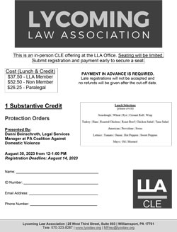 Contact:Michele Frey - 570-323-8287 - MFrey@lycolaw.org