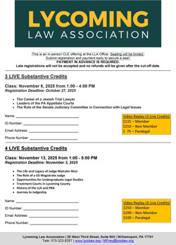 Location: LLA Office - 25 West Third Street, Suite 803, Williamsport