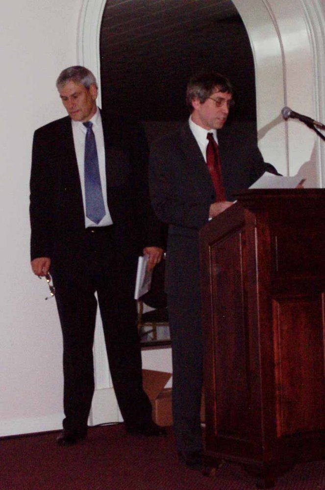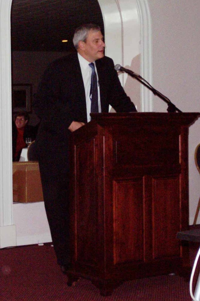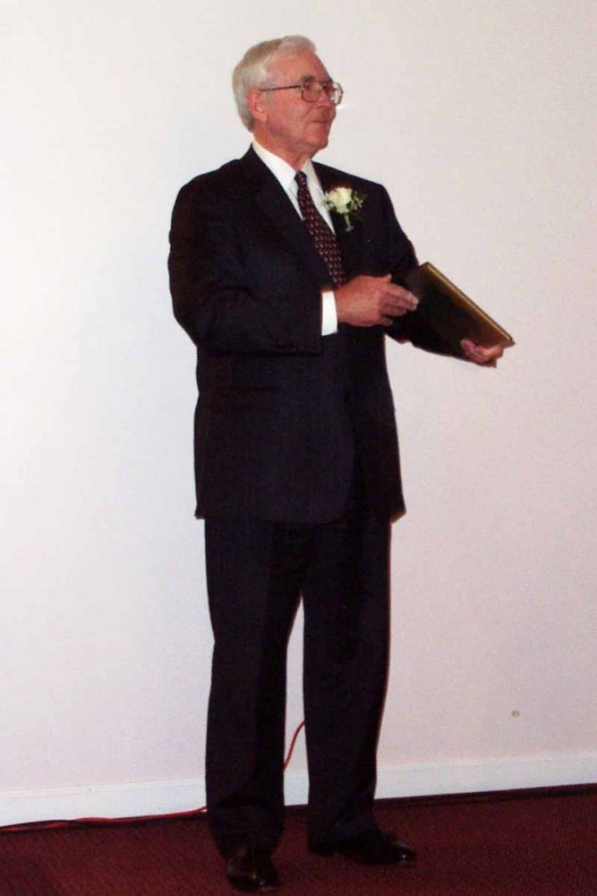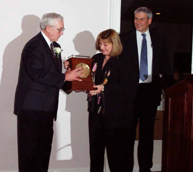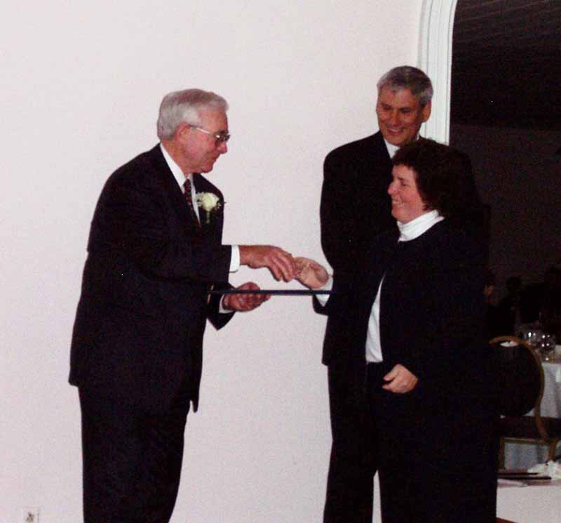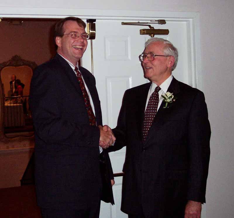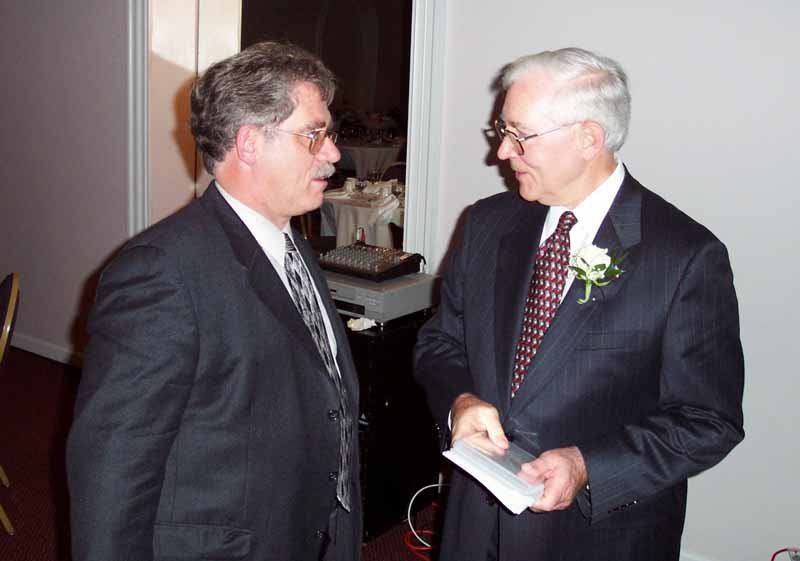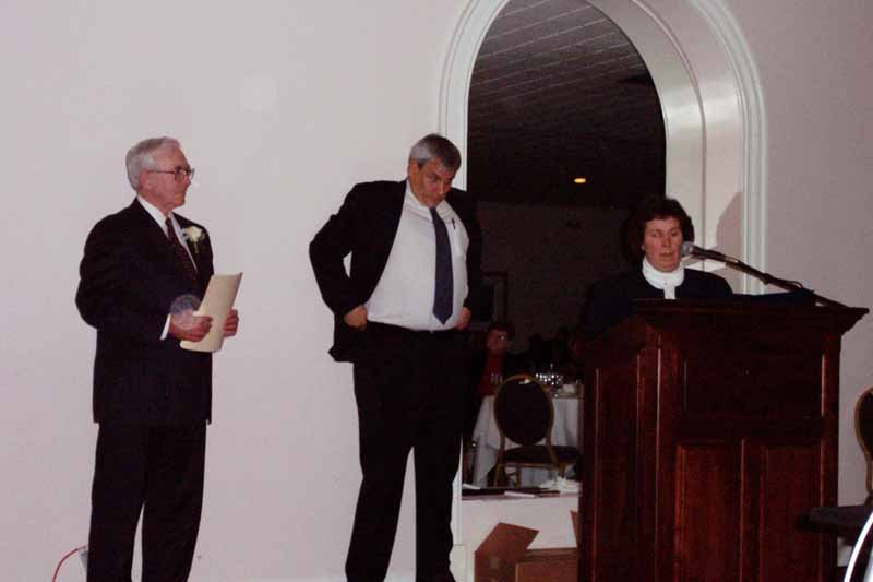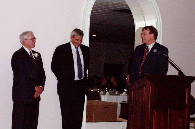 Judge Dudley N. Anderson served as master of ceremonies for the events of the evening, which took place at DiSalvo's Restaurant in Williamsport. Judge William S. Kieser offered the invocation. Following dinner, a 30 minute videotape offered some brief background on Judge Smith's youth and education. His military experience and early carrier were highlighted. The video tape also summarized the circumstances that led to his appointment to the Bench in 1981, by Governor Dick Thornburgh and his election for a full term in November of that year. In 1991 he was retained by an 82.5% affirmative vote and in 2001 Judge Smith was retained by a 78% affirmative vote. Judge Smith became President Judge in 1996.