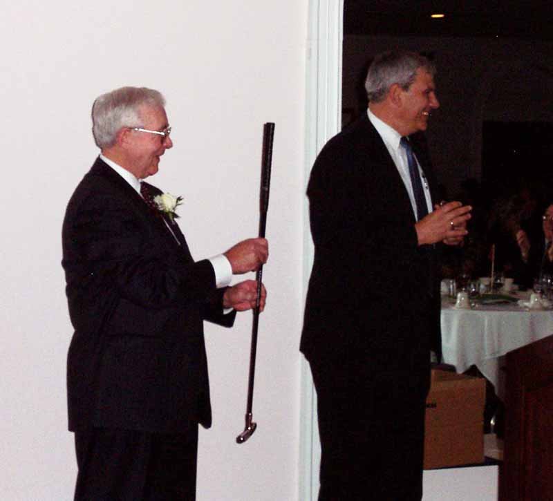 The final presentation was of gifts from the guests to the Judge. An engraved, silver plated golf putter and personalized golf balls were chosen in recognition of the Judge's love of the game and the greater quantity of leisure time that may be available to the Judge in his retirement.