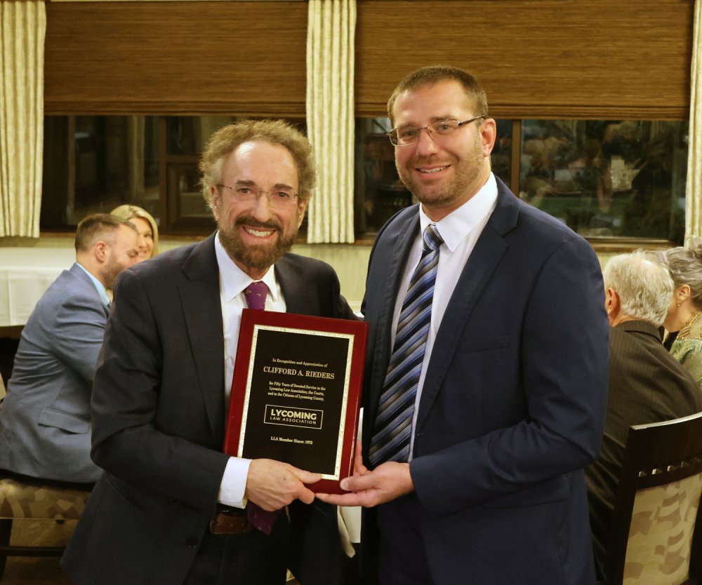 Corey Mowrey then summarized the career of Cliff Rieders, in recognizing his 50-year membership in the Lycoming County Bar. Read more.